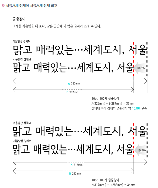 서울서체 폰트 특징