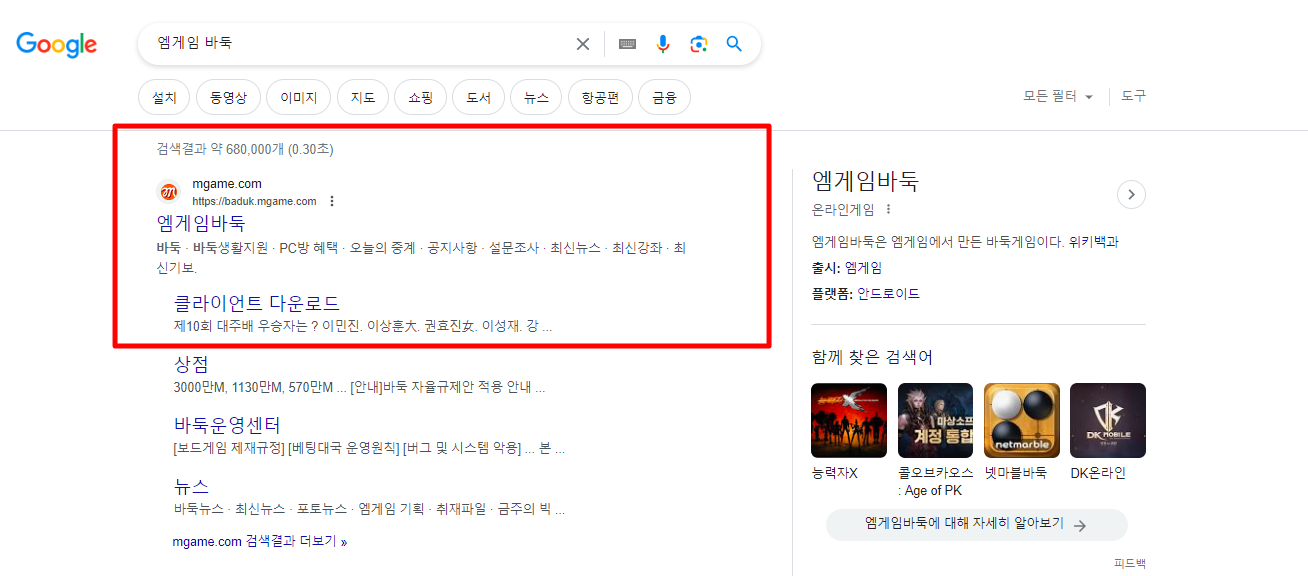 그럼 인터넷 바둑 중에서 엠게임 바둑을 설치하는 방법을 알려드리겠습니다. 이미지와 함께 설치 방법을 자세히 정리했으니 천천히 따라해보시기 바랍니다.구글 검색창에 엠게임 바둑을 검색해서 홈페이지에 접속합니다.