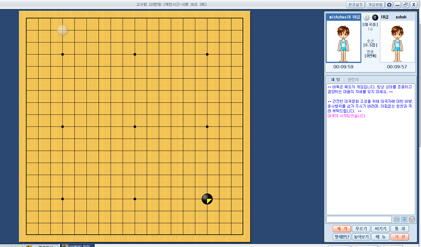 이제 대국실 입장버튼을 눌러주시기 바랍니다.