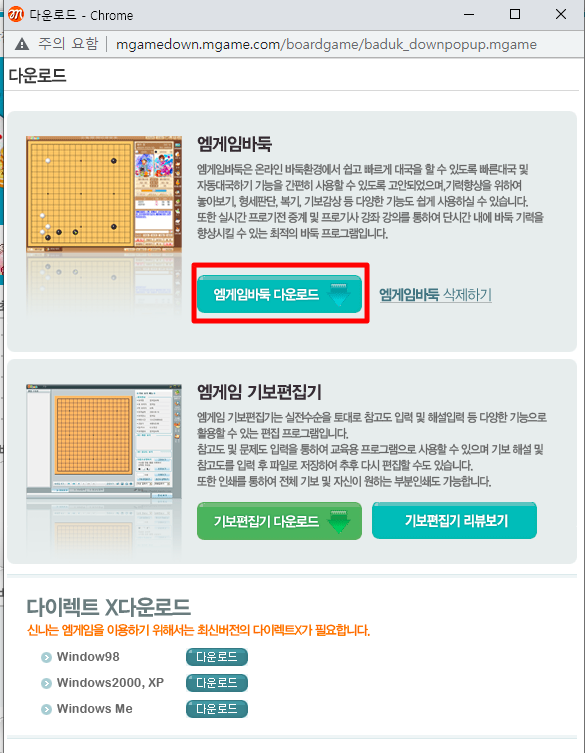 다운로드 버튼을 누르면 팝업창이 뜨게되고 엠게임바둑 다운로드 버튼이 보입니다.클릭해주세요
